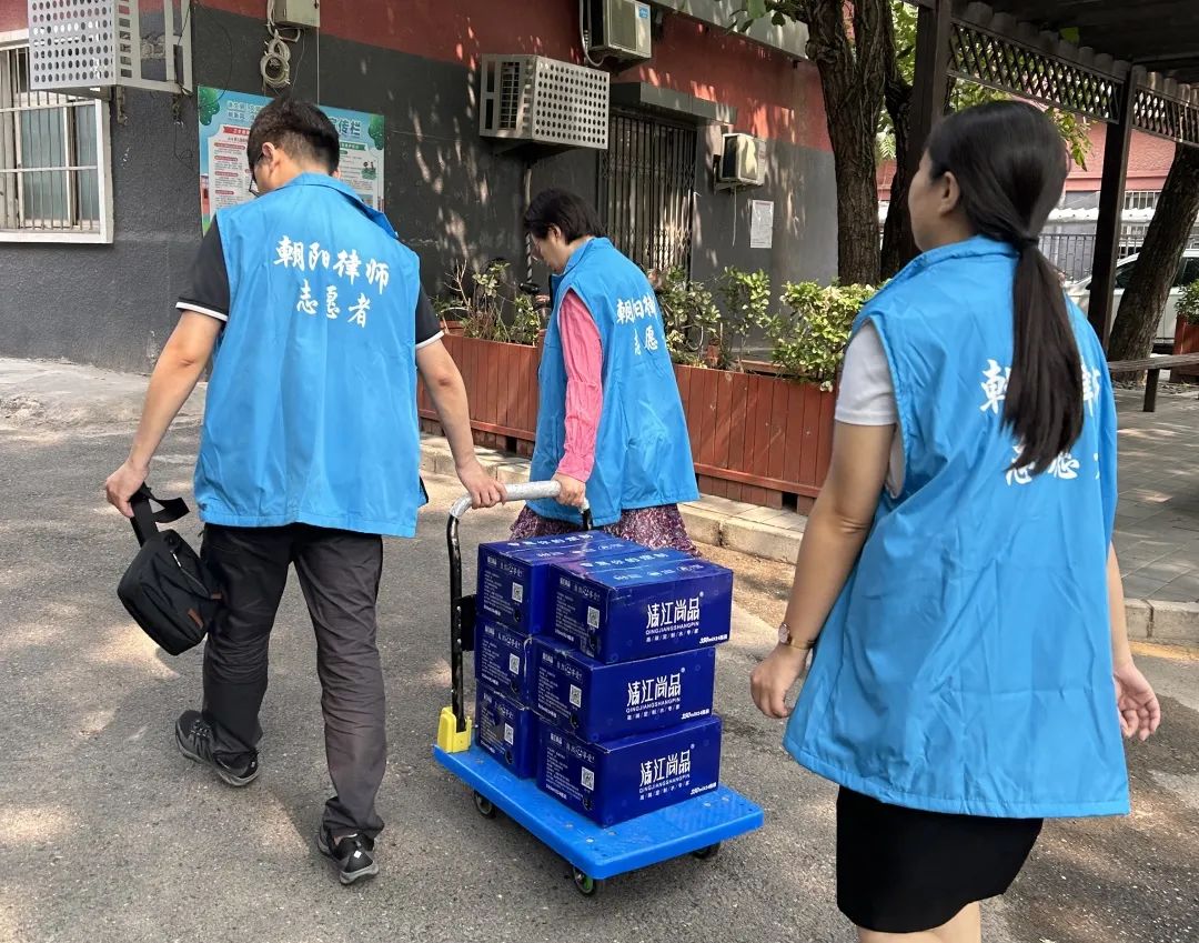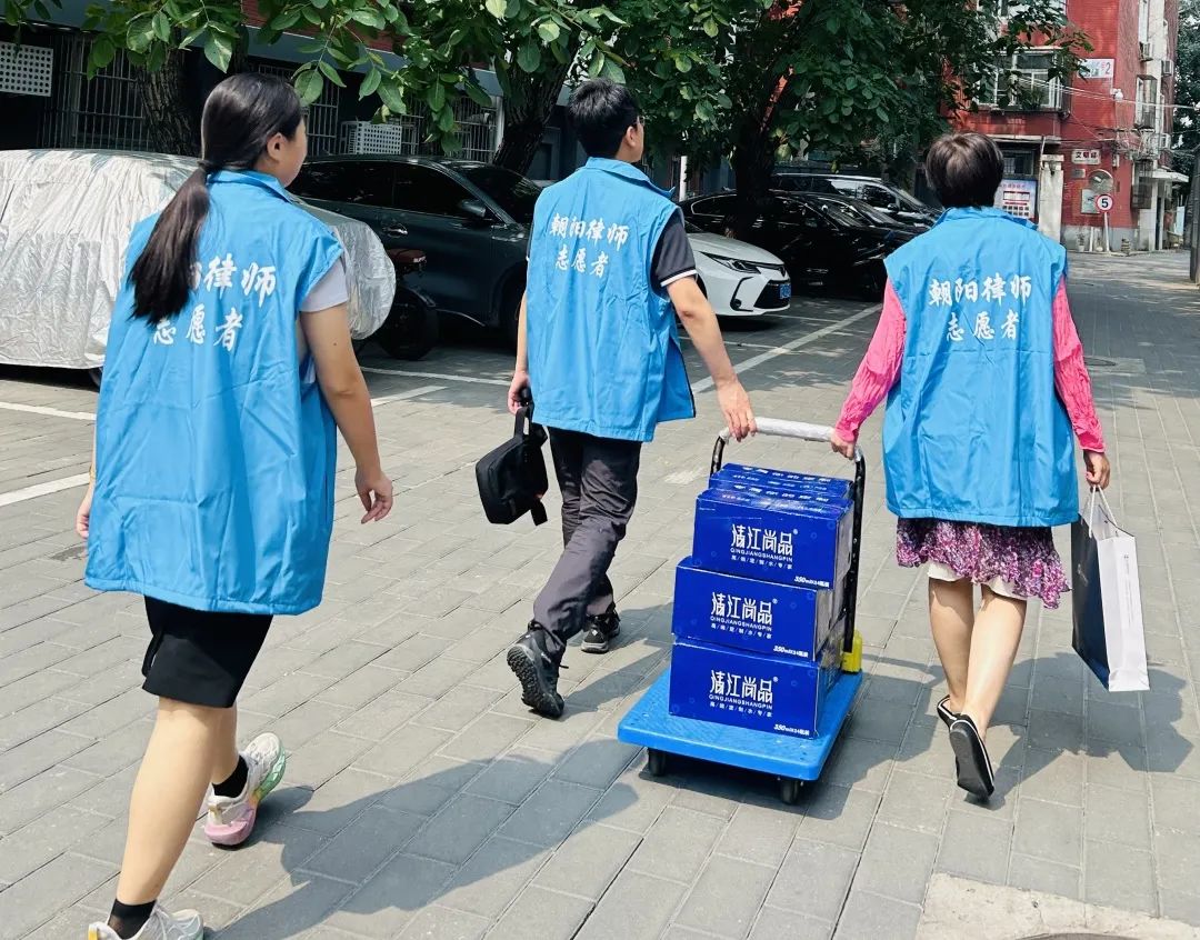 2024年7月11日,北京vsport体育党委所属第二支部、第四支部、第六支部党员律师等践行“万名党员律师助社区,人民满意我先行”,到呼家楼街道小庄社区慰问工作在一线的社区员工和志愿者,给他们送去了夏日清凉。
