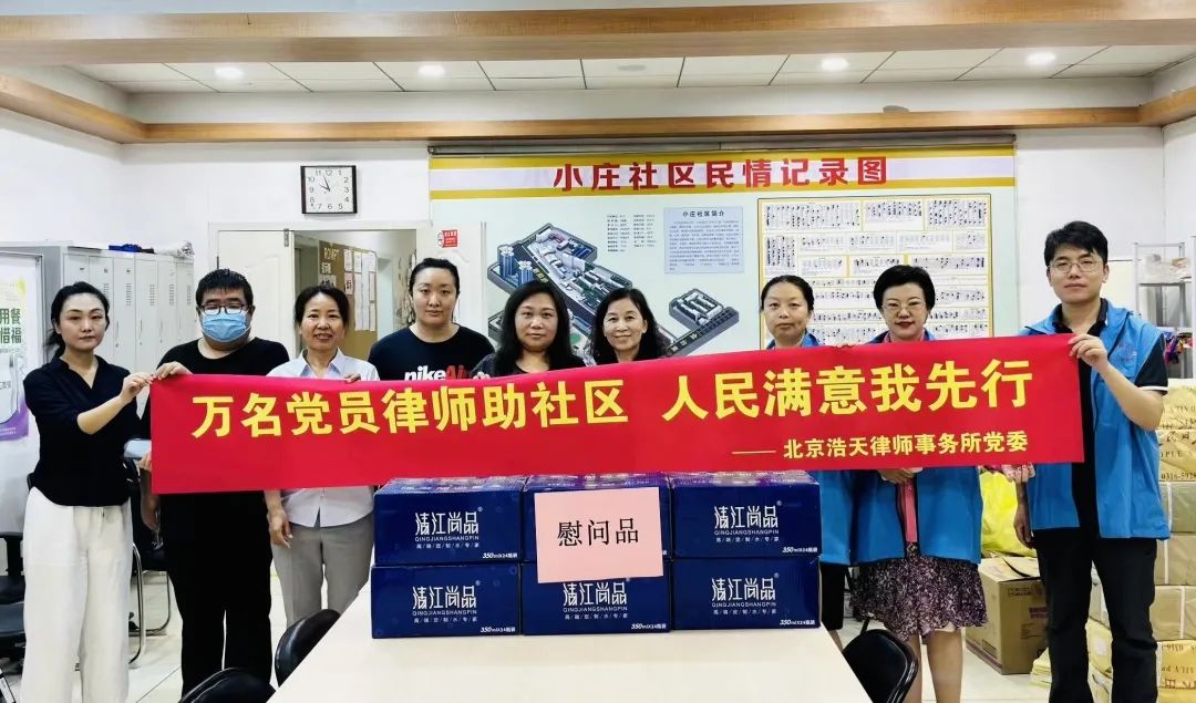在爱国主义教育中,浩天党委始终将为民服务作为重要内容之一。结合“万名党员律师助社区 人民满意我先行”等工作要求,浩天党员律师积极参与社区组织的志愿服务活动。七月中旬,浩天党员律师深入社区一线为社工和志愿者送去矿泉水、冷饮等慰问品,并听取社区党委关于社区居民对物业管理、财产继承、婚姻诉讼等急难愁盼问题的法律诉求,根据社区居民的诉求制定具体的法律援助服务意向。这是今年以来浩天律所党员律师第三次走进社区,用实际行动践行党的群众路线和为人民服务的宗旨。