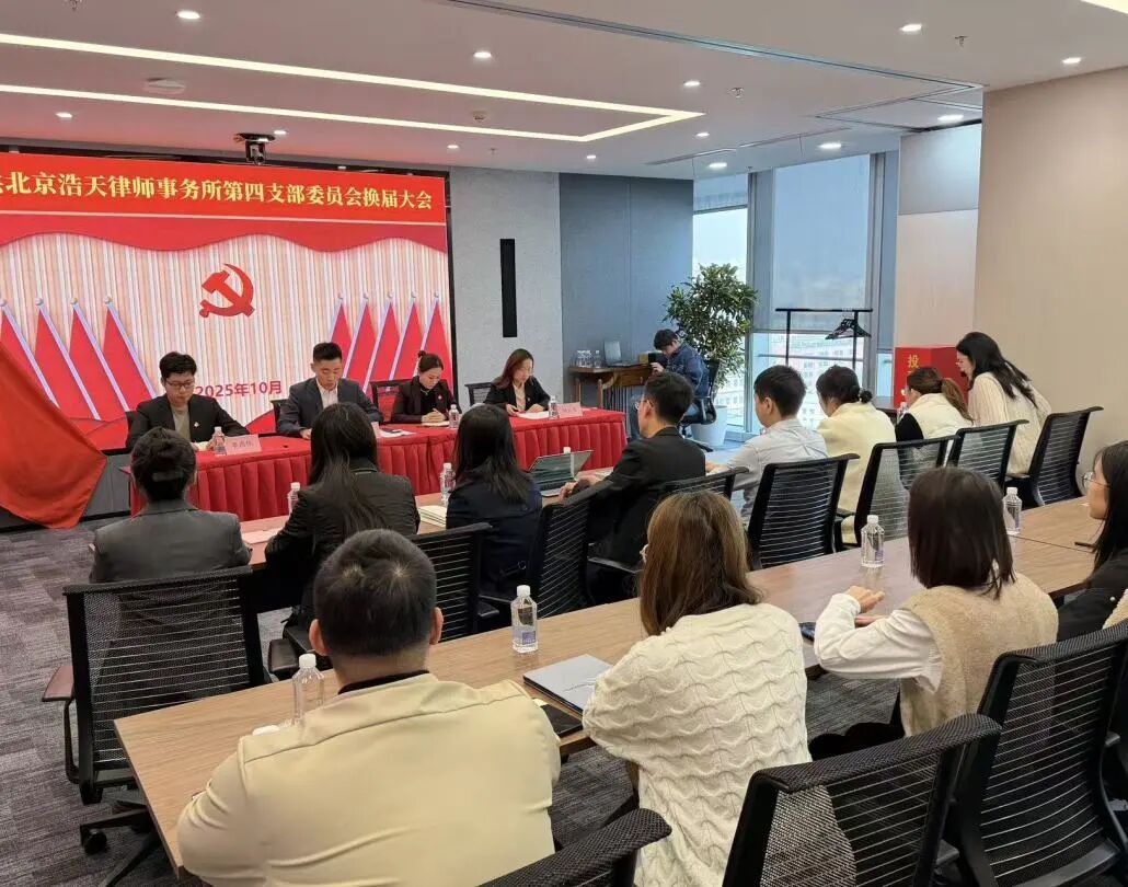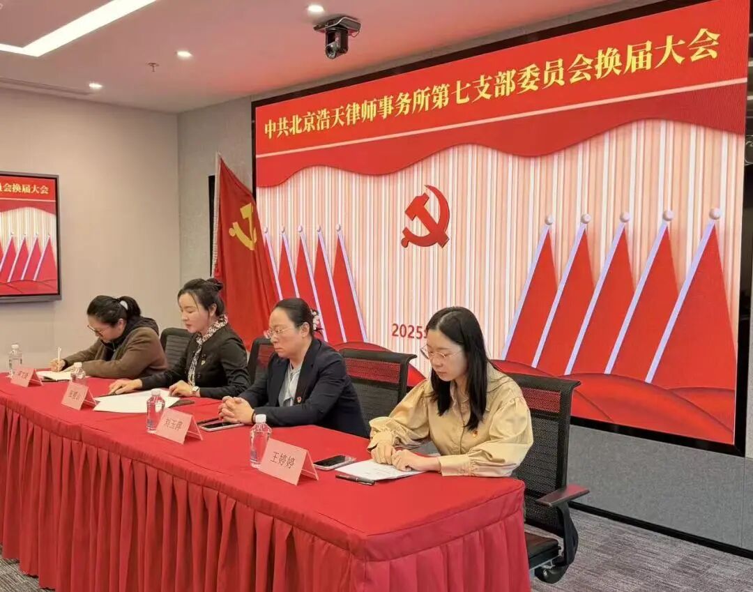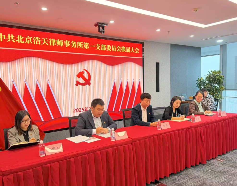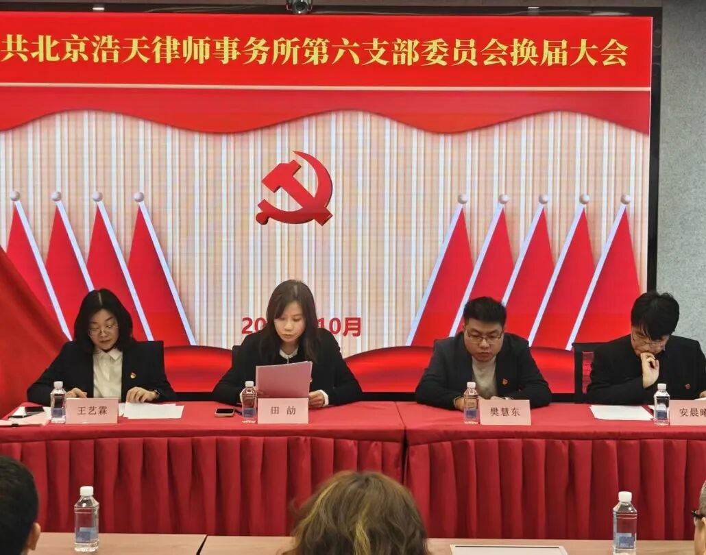 在第一党支部换届选举大会上,浩天党委对第一党支部的工作做了充分肯定。三年来,第一党支部坚持政治引领、思想引领、组织引领。不断夯实党支部基础管理工作。在规范党支部“三会一课”制度、党员主题教育活动、党组织建设、法律公益服务等方面发挥了应有的作用,圆满完成了上级党组织交办的各项任务。很多党员被评为律所优秀律师,优秀合伙人,优秀共产党员。政治素养和法律业务能力得到了广大党员和群众的广泛好评。希望新一届支委会要认真贯彻党的各项路线方针政策,尤其要认真学习贯彻党的四中全会精神,积极落实党支部工作报告中提出的各项工作部署,加强支委会班子建设,发挥好支委会的引领力、组织力、服务力。在创新党支部活动方式、规范支部管理、提高服务水平上有所创新和提升。