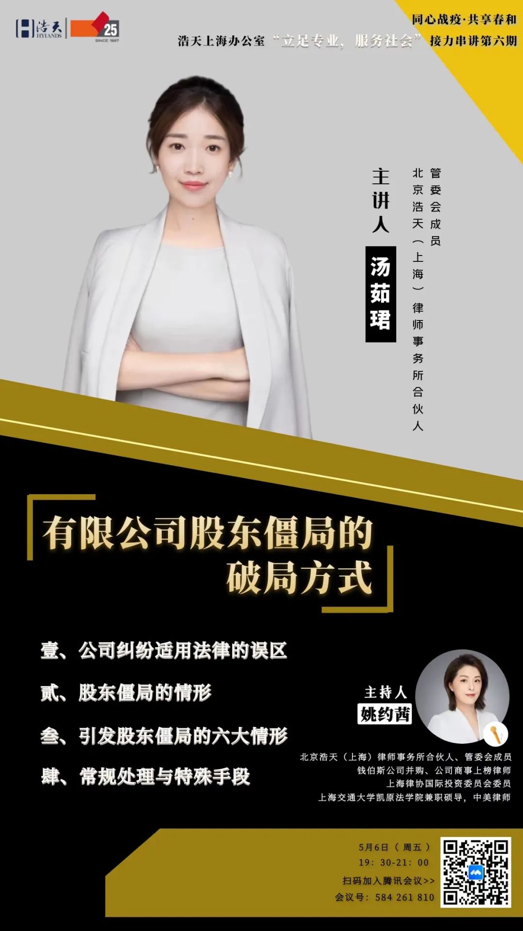守沪战疫 直播邀请 | 有限公司股东僵局的破局方式