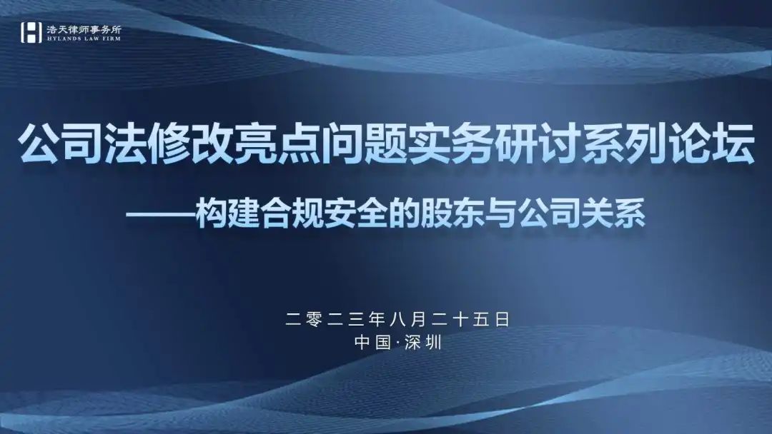 2023年8月25日,公司法修改实务问题研讨系列论坛—构建合规安全的股东与公司关系(深圳站)学术活动在平安金融中心102层北京浩天(深圳)律师事务所("浩天深圳")举办。本次活动由中国国际经济贸易仲裁委员会华南分会、深圳市创业投资同业公会、深圳市新三板上市企业协会、北京vsport体育("浩天")公司业务专业委员会联合主办,由浩天深圳、浩天深圳公司业务专业委员会承办。