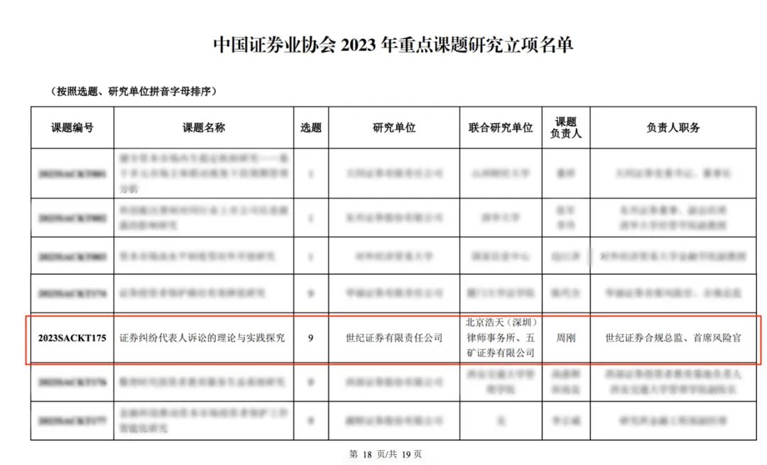 浩天参与《证券纠纷代表人诉讼的理论与实践研究》课题 入选“中国证券业协会2023年重点课题研究立项名单”
