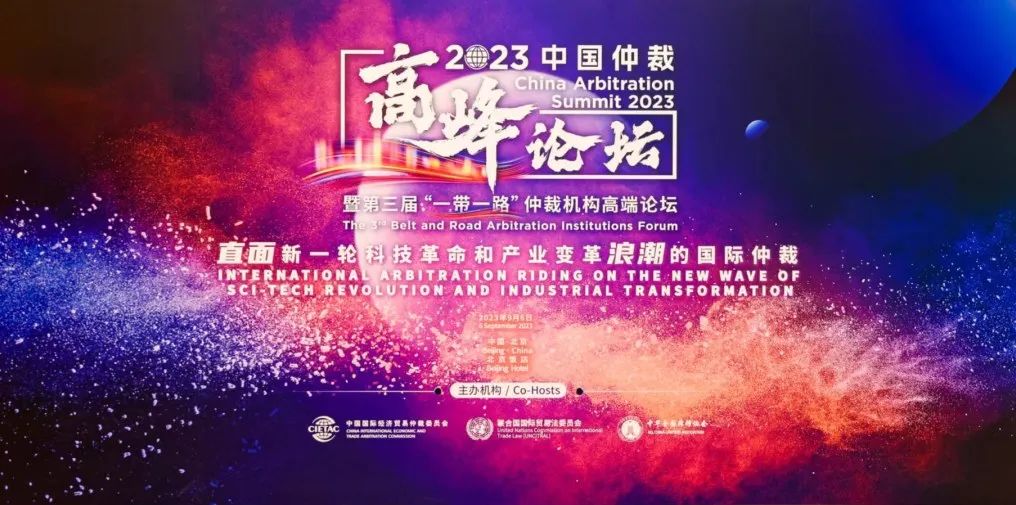 2023年9月6日,2023中国仲裁高峰论坛暨第三届“一带一路”仲裁机构高端论坛在京成功举办。本次论坛由中国国际经济贸易仲裁委员会(CIETAC,简称"贸仲")与联合国国际贸易法委员会(UNCITRAL,简称"联合国贸法会")共同主办。中国国际贸易促进委员会副会长、中国国际商会副会长于健龙,联合国贸法会秘书长Anna JOUBIN-BRET,最高人民法院审判委员会副部级专职委员刘贵祥出席开幕式并致辞;司法部副部长王振江发表视频致辞;贸仲副主任兼秘书长王承杰主持开幕式。国内外主要仲裁机构代表、法官、仲裁员、律师、学者及工商界人士500余人现场参会,其中近100人来自25个国家和地区,来自145个国家和地区超过412万人次在线关注或收看。