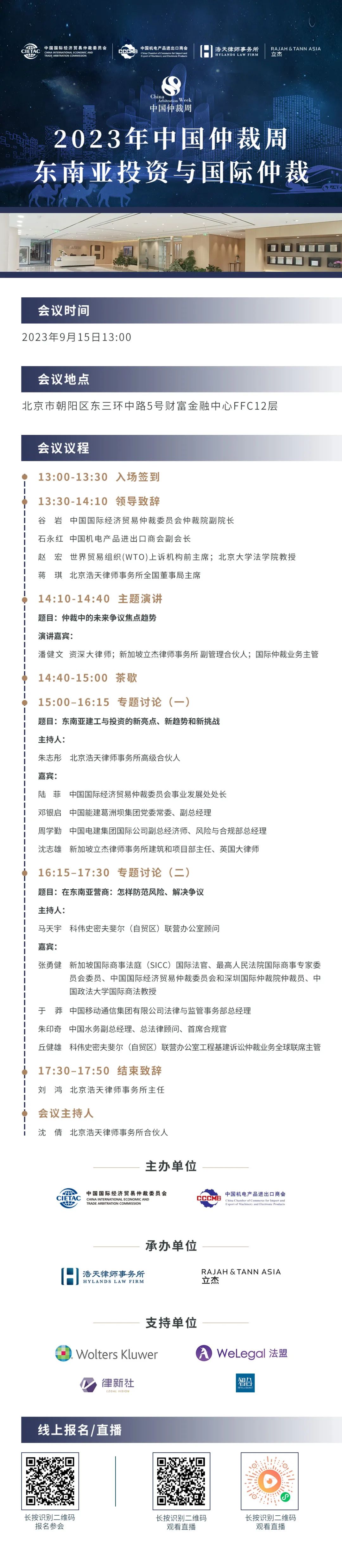 浩天论坛 | 2023年中国仲裁周——东南亚投资与国际仲裁