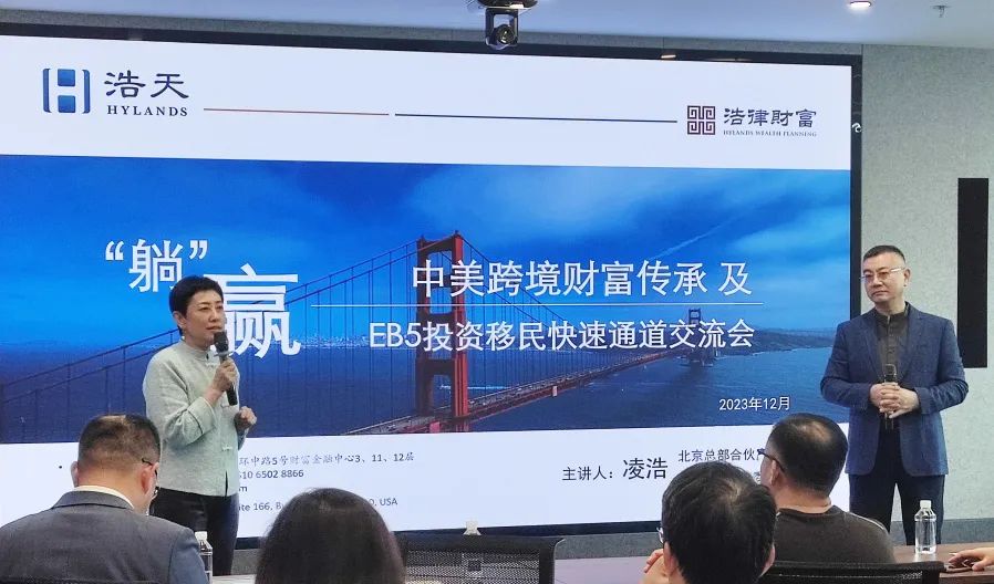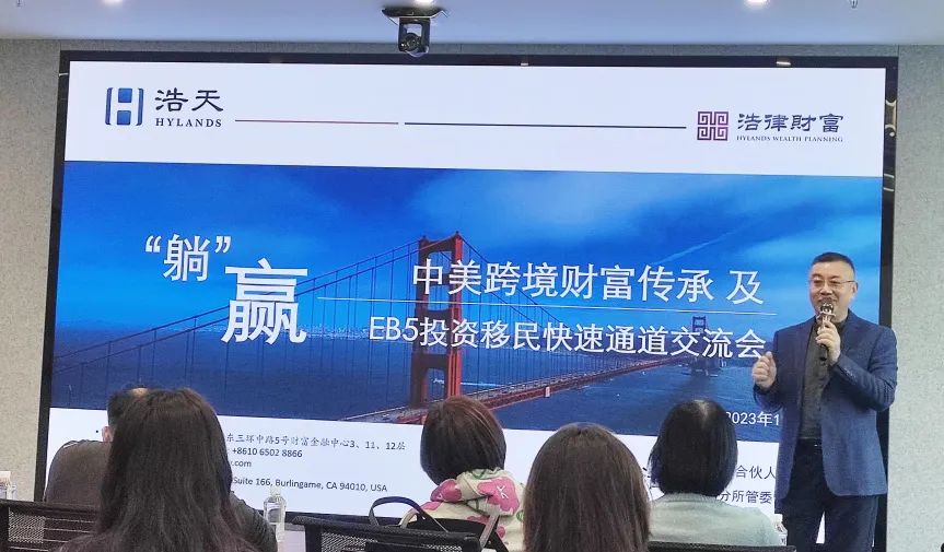 2023年12月4日,凌浩律师作为浩天北京办公室合伙人及浩天旧金山办公室管委会主任,在浩天北京办公室为大家带来了题为《躺“赢”--中美跨境财富传承实务及EB5投资移民快速通道交流会》的专题讲座。