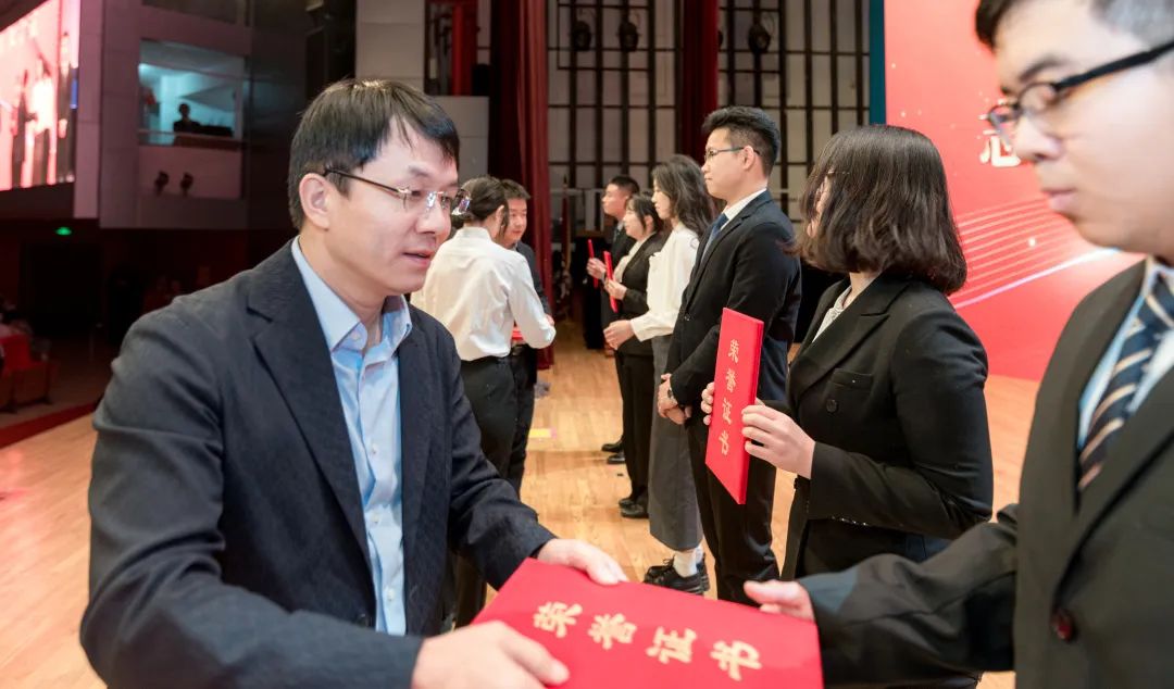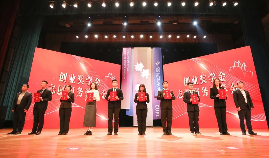 浩天北京办公室管委会成员、合伙人、浩天昌平办公室主任母澈昌律师,第五届中国政法大学青年教学名师奖获得者、马克思主义学院蔺庆春老师共同为创业奖学金、志愿服务奖学金获奖学生代表颁奖。