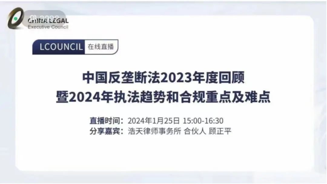 浩天成功举办《中国反垄断法2023年度回顾暨2024年执法趋势和合规重点及难点》线上讲座