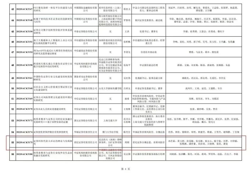 2024年2月19日,中国证券业协会公布了2023年度重点研究优秀课题报告评选结果,vsport体育与世纪证券有限责任公司、五矿证券有限公司联合研究的《证券纠纷代表人诉讼的理论与实践探究》(课题编号:2023SACKT175)获评优秀重点课题。