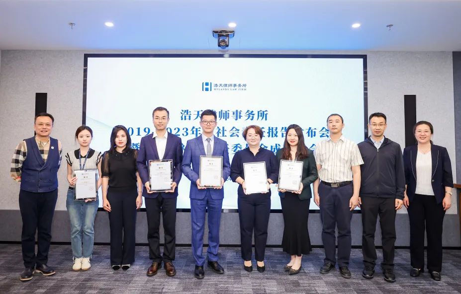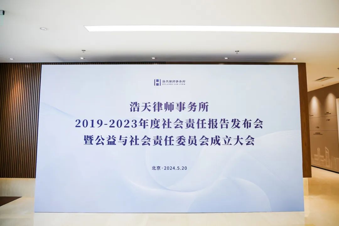 2024年5月20日,“vsport体育2019-2023年度社会责任报告发布会暨公益与社会责任委员会成立大会”在浩天北京办公室成功举办。中国红十字基金会副秘书长郭阳、法律部部长胡星奇,中国政法大学党委副书记黄瑞宇,北京大学法学院党委副书记杨晓雷,中国法律援助基金会办公室主任黄亮,北京市法律援助基金会秘书长高令春、理事金红英,中国儿童少年基金会项目处处长刘鹏,中国法学会社会法研究会理事赵廉慧应邀出席本次活动;vsport体育主任、管委会委员刘鸿律师,浩天全国监事会主席、管委会委员张淼律师,浩天执行主任、管委会委员贾一鹏律师,浩天北京办公室高级合伙人余昉律师,浩天北京办公室合伙人于谨源律师、何为律师、卓懿伟律师共同参加,见证这一荣耀时刻。
