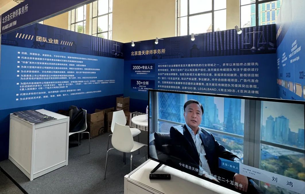 此次参展由浩天全国娱乐传媒行业委员会牵头,合伙人律师刘盈子、何为、周汉、孙超和律师贾青青、耿婷等筹备和组织了本次参展活动。参与本次展会现场活动的还包括浩天北京和上海两地办公室的合伙人陶姗、刘京、沈素然和顾正平以及律师侯宛辰、于海霞和魏早沛。