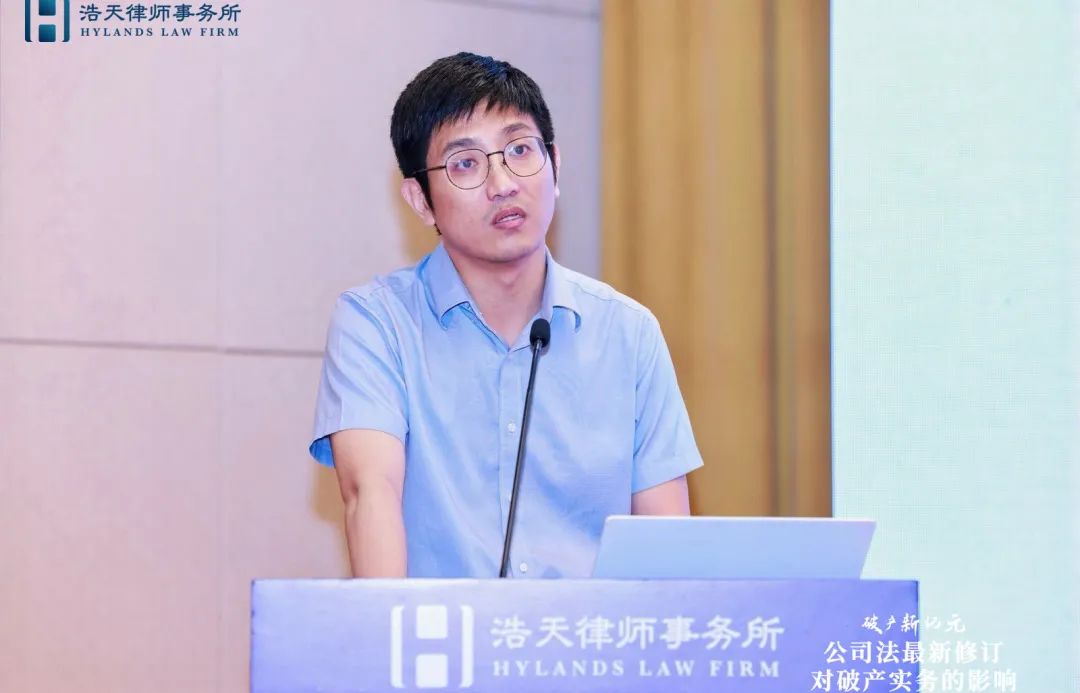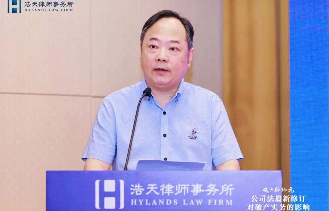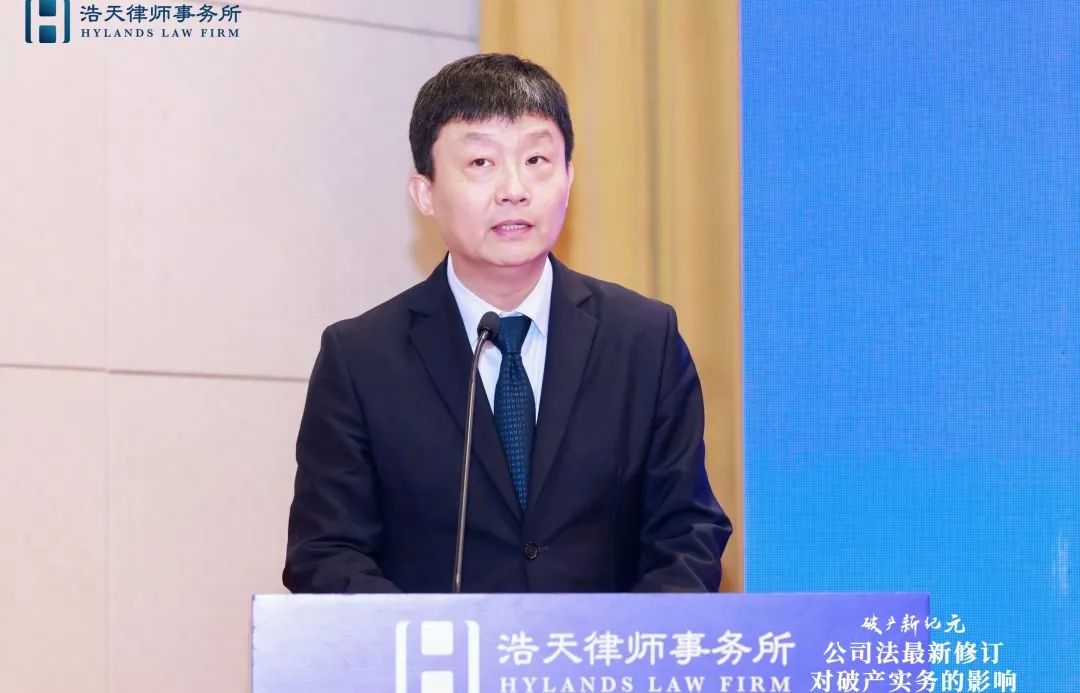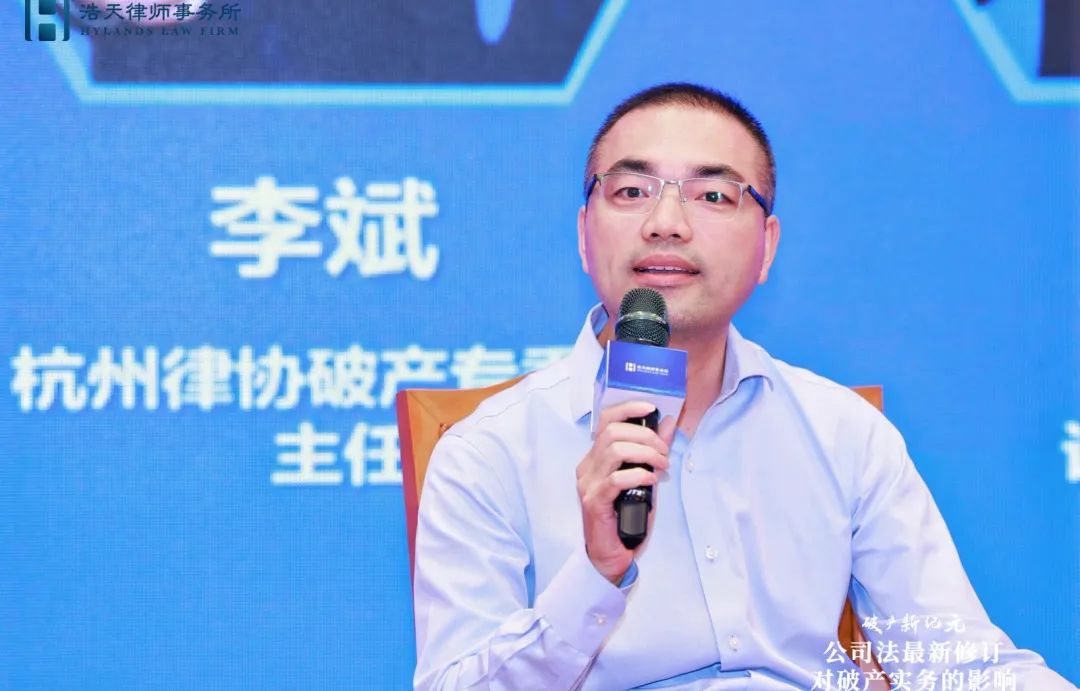 杭州律协破产专委会主任李斌则聚焦新公司法关于强化社会责任的内容如何落实到破产实务;类别股制度的引进如何对破产实务实现赋能创新;股东失权规则在破产语境下如何实现其功能三个角度,阐述了新公司法对破产业务带来的挑战和机遇。