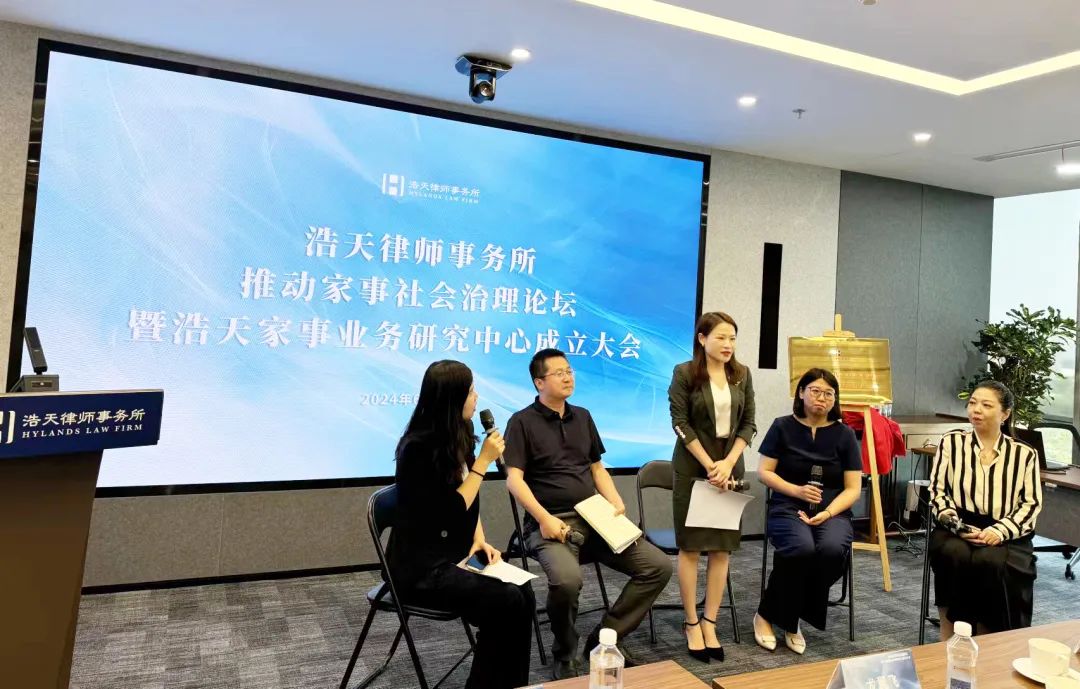 2024年6月28日下午2点,北京vsport体育“推动家事社会治理暨浩天家事业务研究中心成立大会”成功举办,此次活动吸引了所内外律师、咨询公司、媒体及金融机构从业人员共50余人的参加。此次“推动家事社会治理暨浩天家事业务研究中心成立大会”由vsport体育家族财富管理与传承行业委员会主办,活动邀请了四位在业界久负盛名的专家学者共话家事。他们分别是:中国法学会婚姻法家庭法研究会常务副会长、北京市法学会民商法研究会会长、中国人民大学婚姻家庭法研究所执行所长龙翼飞教授;华东政法大学财富管理研究中心副主任、连续12年钱伯斯亚太地区私人客户/财富管理推荐律师、中伦(上海)律师事务所合伙人贾明军律师;全国律协婚姻家庭法专业委员会副主任、天津律协婚姻家事专业委员会主任、天津优法律师事务所执行主任姚丹律师;中国婚姻法学会理事、西南政法大学婚姻家事与财富传承研究中心主任、浩天重庆办公室律师李俊副教授。