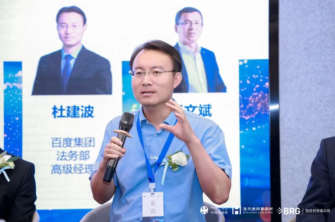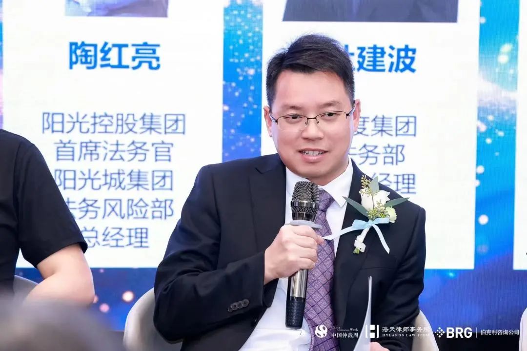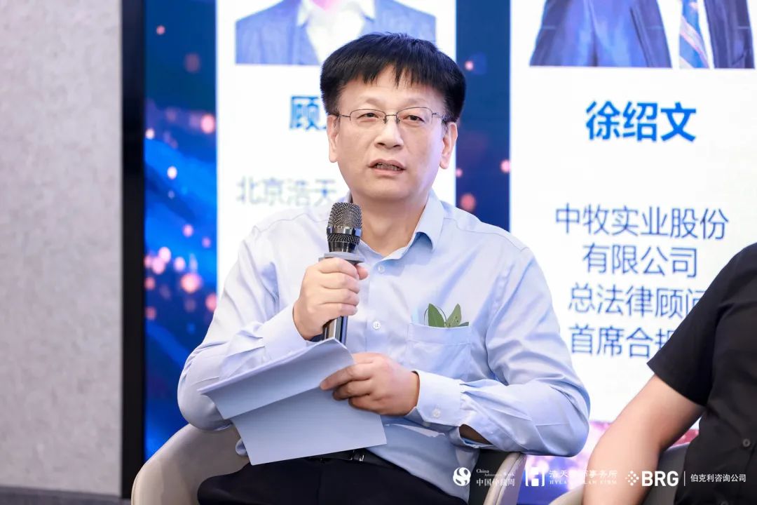 在圆桌讨论环节,与会嘉宾分别围绕“新公司法背景下的股东/公司权利保护”和“公司类争议案件中的实务热点问题”展开了深入交流。圆桌讨论(一)以“新公司法背景下的股东/公司权利保护”为主题,由北京浩天(上海)律师事务所高级合伙人顾正平律师主持,嘉宾包括中牧实业股份有限公司总法律顾问及首席合规官徐绍文、中智集团法务合规与审计部副部长周治成、阳光控股集团首席法务官、阳光城集团法务风险部总经理陶红亮、百度集团法务部高级经理杜剑波、维美德(中国)有限公司法务总监王文斌。