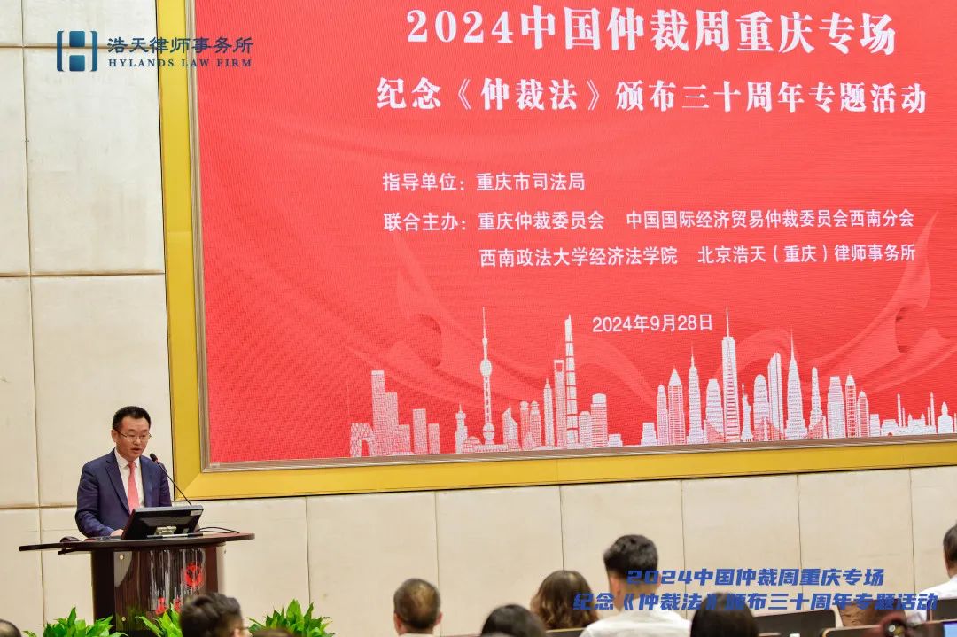 北京浩天(重庆)律师事务所主任杨洪胜在作总结发言时表示,此次活动的成功举办不仅为仲裁领域的理论研究和实践探索提供了宝贵的经验,也为中国仲裁的国际化发展指明了方向。他强调,随着仲裁法的不断完善和全球仲裁规则的接轨,中国仲裁将继续在国际仲裁领域发挥重要作用,同时北京浩天(重庆)律师事务所也将继续发挥国际商事仲裁中的优势,竭诚为海内外客户提供优质、专业、高效的法律服务。