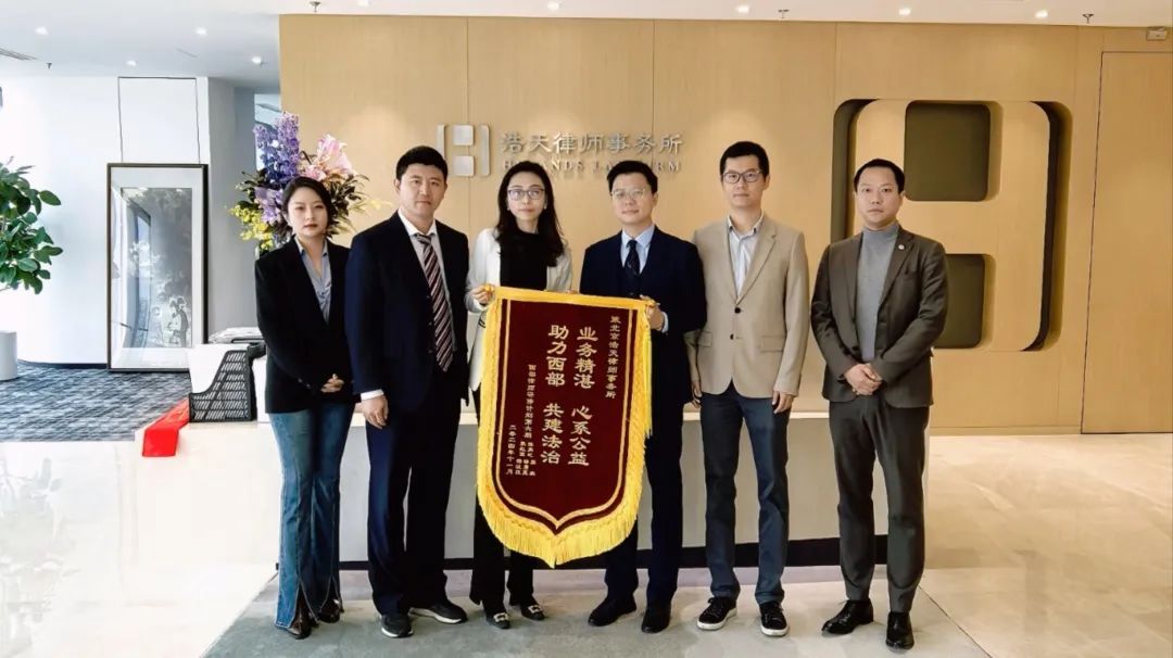在研修结束之际,五位西部律师对浩天此次的安排表达了高度的赞扬与感激之情,并特意准备了一面锦旗,以表达他们最诚挚的谢意。同时,陕西省律师协会亦向浩天赠送了专属定制的礼品,以此衷心感谢浩天在这段时间里对陕西律师所给予的支持。这一举动不仅是对浩天工作的肯定,更是对双方未来合作的美好期待与坚定信心。