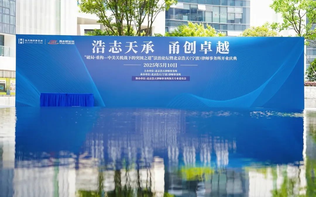 2025年5月10日,北京浩天(宁波)律师事务所正式落户宁波这座东海之滨的开放之城!值此中美贸易格局深刻变革之际,我们以「破局·重构」为主题,隆重举办开业剪彩仪式暨法治论坛,携手政界、学界、商界精英,共探中美关税战下的战略突围之道。