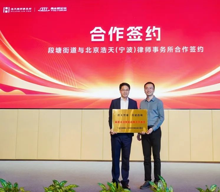 值此浩天宁波办公室启航之际,浩天宁波办公室聘请国务院参事、原中国政法大学法学院校长焦洪昌教授作为首席学术顾问,并与华东政法大学、宁波市海曙区段塘街道、宁波市海曙区工商业联合会、甬水桥科创中心等四家单位签署战略协作框架协议,在涉外合规指引、知识产权争议解决、跨境投资法律风险评估等领域深化协同创新。
