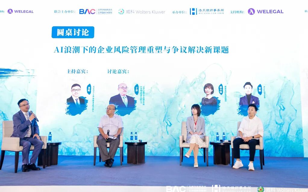 在“AI浪潮下的企业风险管理重塑与争议解决新课题”圆桌论坛上,中国移动集团有限公司法律与监管事务部总经理于莽、搜狐集团总法律顾问庞小妹、Keep 法务总监梁敏与北京浩天(上海)律师事务所合伙人董皓律师展开深度对话。嘉宾们围绕法律探讨了AI技术在争议解决、知识产权、数据安全及法务流程优化中的前沿应用与挑战,为数智化时代的企业合规与风险防控提供了思路与实践指引。