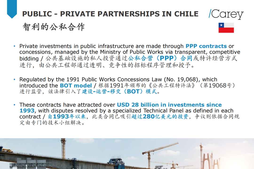 智利Carey律师事务所合伙人Alberto Cardemil(俊杰)就“投资智利”发表主题演讲。他介绍,智利不仅是拉丁美洲经济自由度和竞争力排名第一的国家,更是中国在拉美最重要的经贸伙伴之一。中智两国创下多个“第一”:智利是第一个与中国建交的南美国家、第一个承认中国市场经济地位的拉美国家、第一个与中国签署自贸协定的拉美国家。Cardemil列举了一系列关键数据,智利在基础设施、矿业、可再生能源、数字经济等领域存在大量公私合作(PPP)机会。未来五年,智利计划推动机场、公路、水资源安全等多个重大基础设施项目,为中国企业带来广阔参与空间。