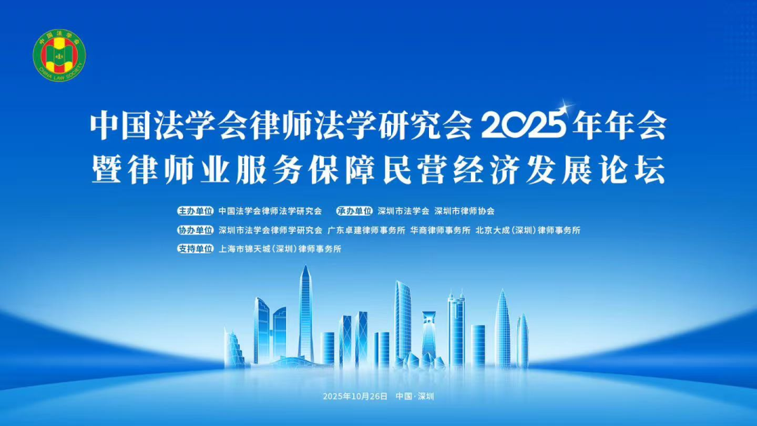 为深入贯彻落实党中央关于民营经济发展的重要指示精神,推动今年4月底全国人大常委会审议通过的《中华人民共和国民营经济促进法》落地见效,衔接“十五五”时期高质量发展战略部署,中国法学会律师法学研究会2025年年会暨律师业服务保障民营经济发展论坛于2025年10月26日在深圳市国银金融中心大厦盛大启幕。
