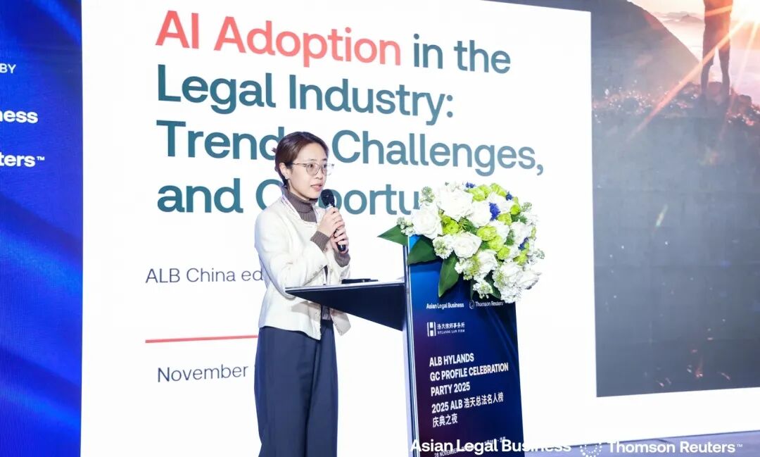 随后,汤森路透ALB中国区法律编辑胡阳潇潇于现场展开“法律行业的AI应用:趋势、挑战与机遇”主题分享。她透过汤森路透于全球法律市场展开的调研,以及ALB对中国法务团队的深度采访,介绍了法律行业AI应用普及现状、应用场景、所遇挑战、投入产出比衡量,并对行业未来发展予以展望。