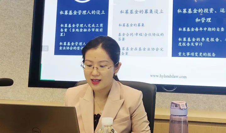 合伙人沈倩律师、顾问张硕分别分享了国际贸易、私募股权与投资基金领域相关内容。