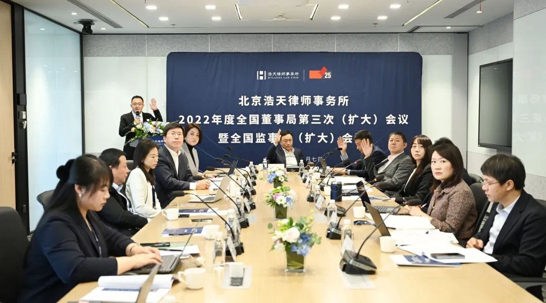 北风潜入悄无踪,未品秋浓已立冬。2022年11月7日,正值立冬,“北京vsport体育2022年度全国董事局第三次(扩大)会议暨全国监事会(扩大)会议”在浩天北京总部隆重召开,会议延用了线上+线下相结合的形式,北京vsport体育主任刘鸿律师、全国合伙人代表大会主席朱征夫律师、全国董事局主席蒋琪律师、全国监事会主席彭章键律师、北京总所管委会主任徐羽律师及全国董事局、全国监事会全体成员出席本次会议,北京管委会全体成员列席会议。