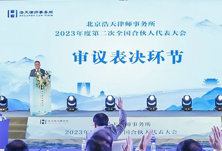 全国董事局主席蒋琪律师主持审议表决大会,大会表决通过了《2022年度关于全国管理事务的年度决算报告》和《2023年度关于全国管理事务的年度预算方案》,充分体现了浩天全国合伙人对2022年律所管理工作和2023年律所预算安排的充分肯定和高度认可。