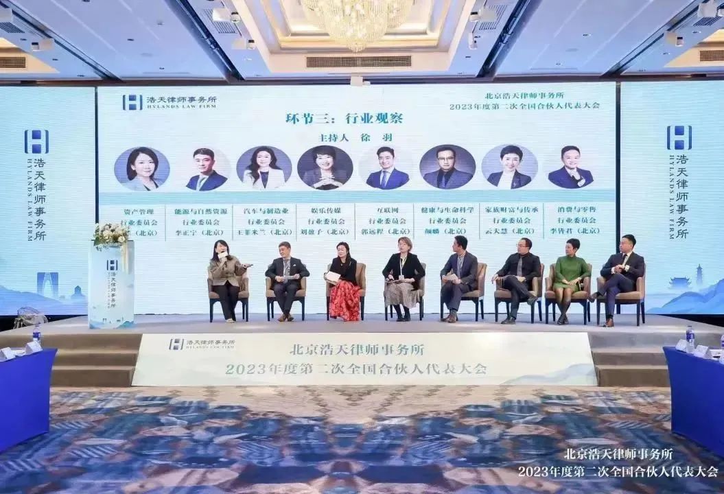 浩天总所管委会主任徐羽律师主持了全国二十大行业委员会和专业委员会主题讨论环节。各行业委员会及专业委员会代表分别对本行业及专业委员会2023年度工作开展进行了主题发言,各位发言人以深度洞察作为核心内容,就当前行业及专业发展趋势、拓展合作渠道等事宜进行了充分探讨。