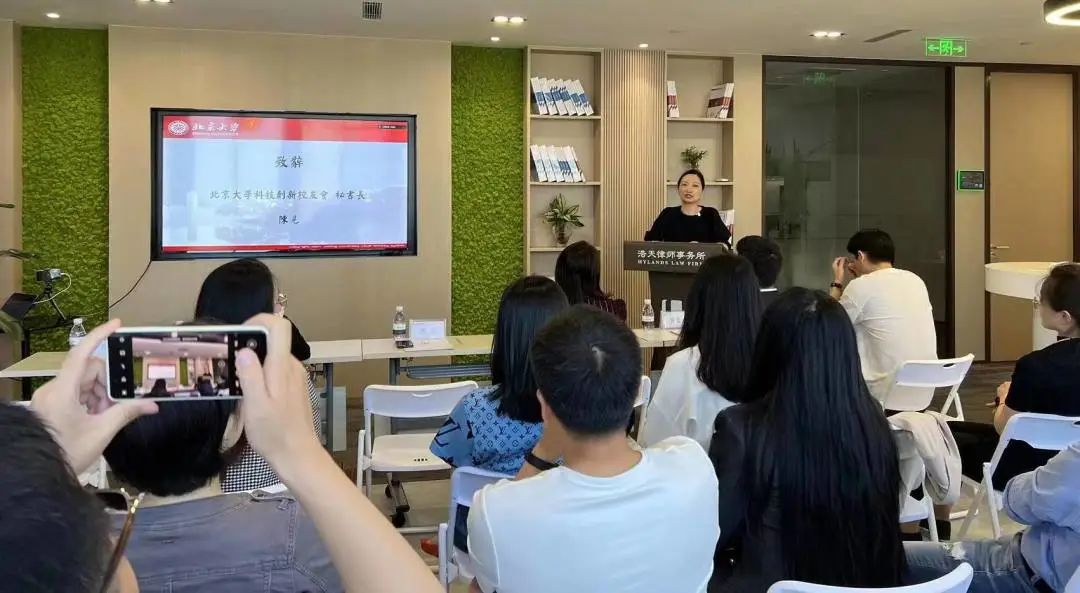 北京大学科技创新校友会秘书长陈见女士在致辞中为大家介绍了北大科技创新校友会的发展情况及服务理念,她鼓励与会校友、专家加强互动交流,不受拘束的分享彼此经验和见解,并表示北大科创校友会将持续开展高质量品牌活动,深度服务在沪校友及校友企业,不断强化联动赋能等多种维度搭建互通渠道。