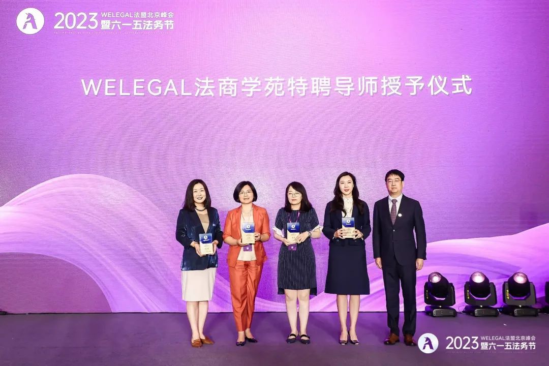 峰会主办方举行了“WELEGAL法商学苑特聘导师授予仪式”,为10位优秀的合伙人律师、法律科技专家、行业专家颁发了导师证书。秦丽萍律师作为特聘导师上台领奖。