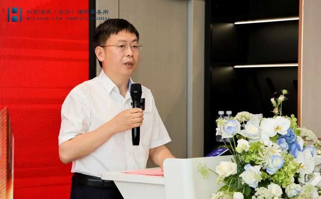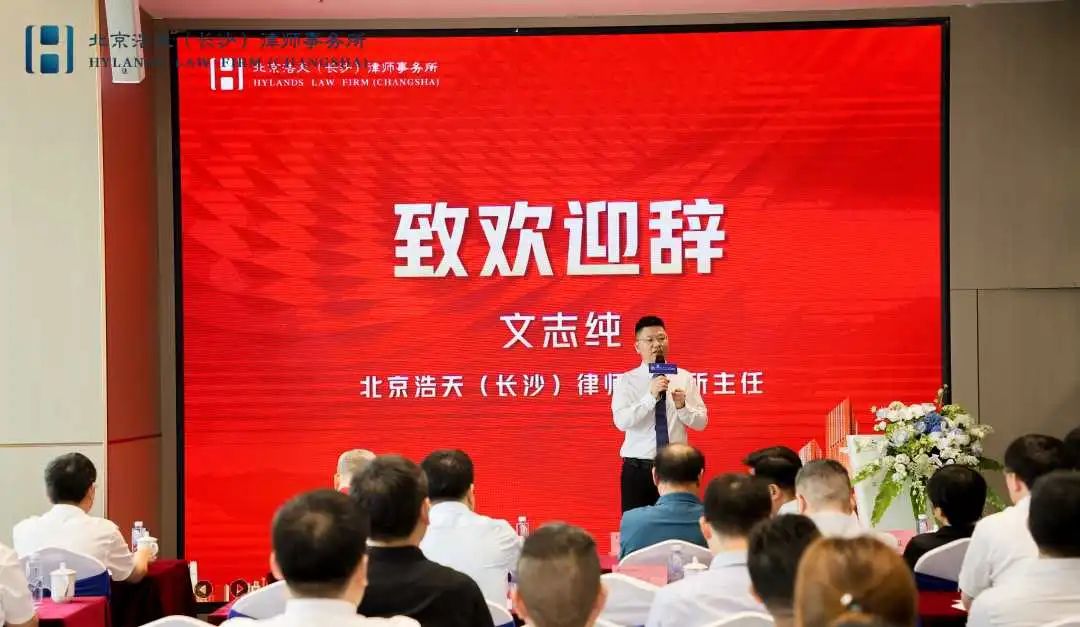湖南省法学会工程法学研究会副会长、湖南省法学会破产与重组研究会副会长、浩天长沙办公室主任文志纯致欢迎辞,他表示感谢湖南省法学会领导信任,让浩天长沙办公室承办此次汇聚各界法律专家学者的思想碰撞与交流的盛宴,今后我所将不断加强与各法律部门、协会的精诚合作,共同推动法律共同体建设向更高水平迈进。