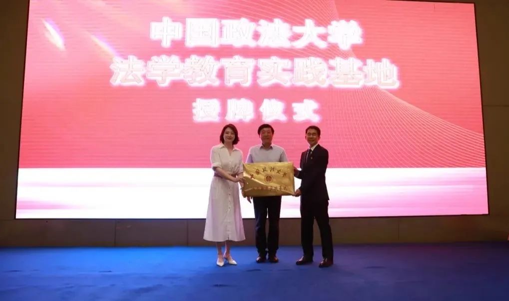 中国政法大学副校长冯世勇代表学校向浩天乌鲁木齐分所授予中国政法大学“法学教育实践基地”牌匾。