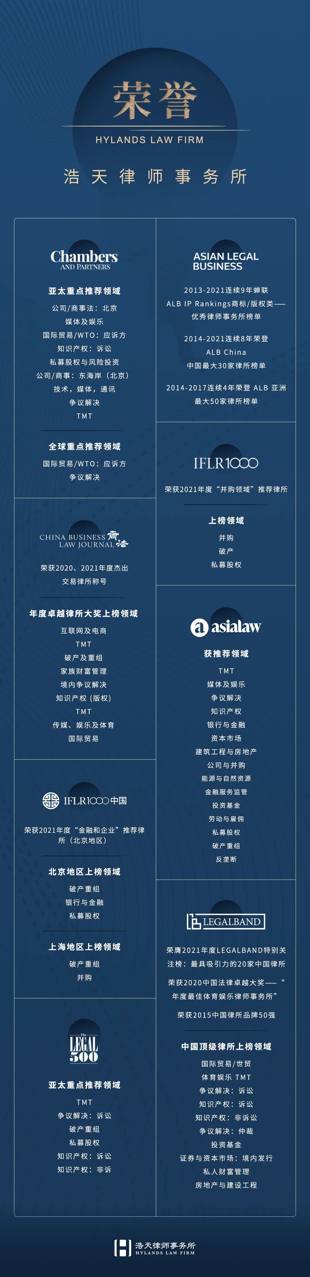 2023年9月12日,知名法律评级机构LEGALBAND公布了“2023年度LEGALBAND中国律师特别推荐榜15强:ESG与绿色经济”榜单,北京浩天(上海)律师事务所合伙人沈海翔律师凭借卓越的客户口碑及市场表现荣誉登榜。