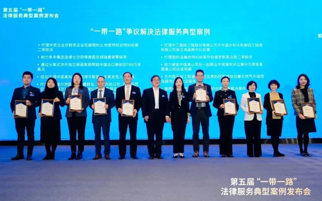 由法制日报社主办,法治网、法报文化传媒(北京)有限公司承办的第五届“一带一路”法律服务典型案例发布会于2023年11月12日在京举办。会上, “一带一路”十大争议解决法律服务典型案例、“一带一路”十大投资类法律服务典型案例、“一带一路”十大合规法律服务典型案例、“一带一路”十大法律服务创新典型案例、三个特别贡献机构和三位特别贡献人物名单揭晓。