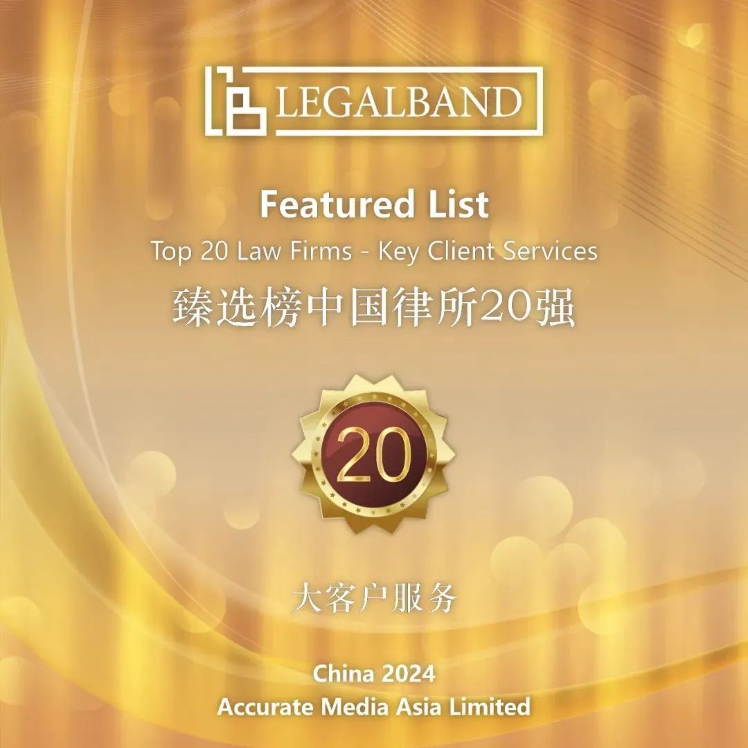 本次评选,LEGALBAND重点参考了各大律所自荐材料以及客户反馈信息等,同时结合LEGALBAND中国区驻地调研团队对中国法律服务市场的长期关注与洞察,最终臻选出20家具有卓越大客户服务能力的中国律师事务所。