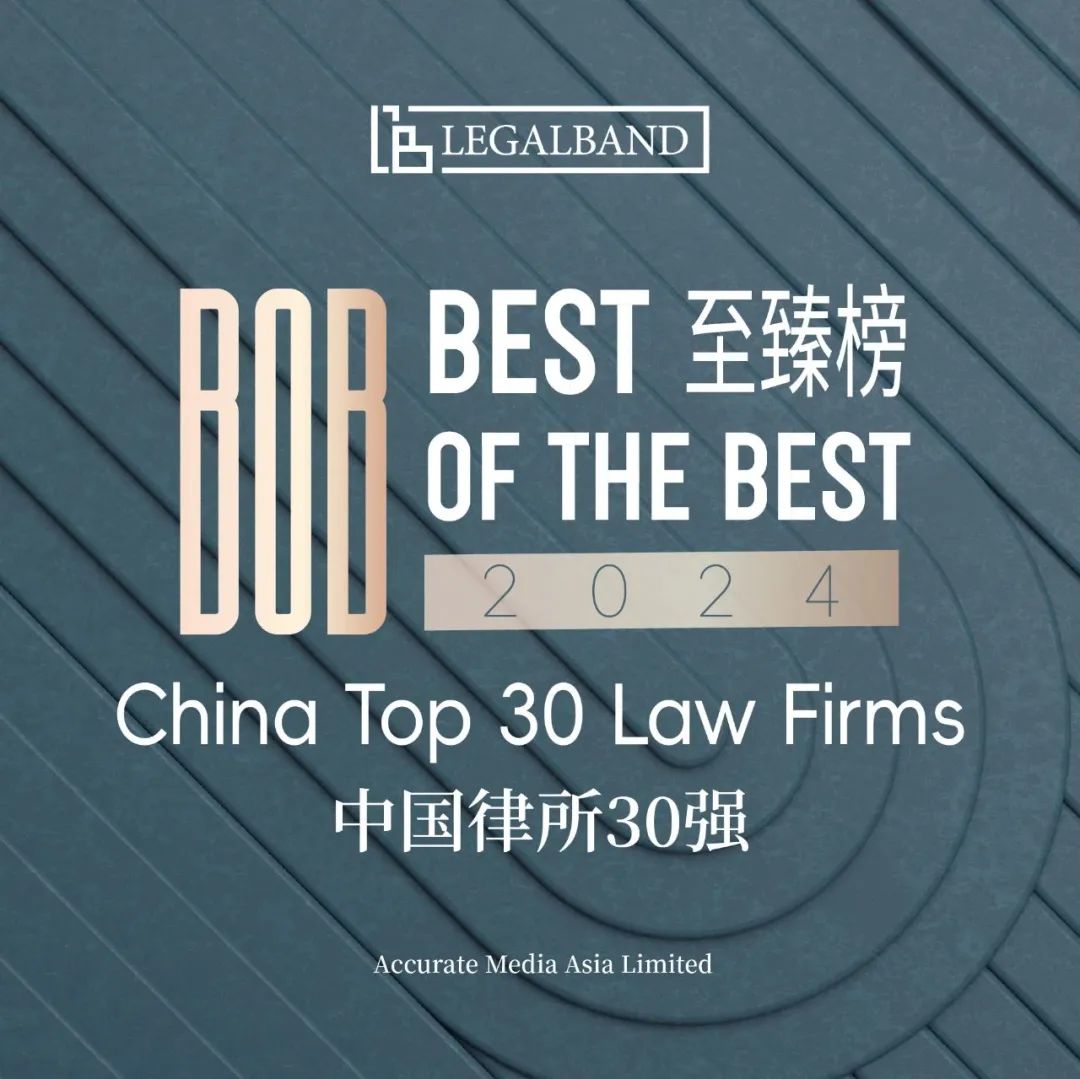 2024年12月3日,知名法律评级机构LEGALBAND公布了“2024年度LEGALBAND BOB中国律所30强”榜单,北京vsport体育凭借卓越的市场表现和良好的客户口碑荣誉登榜。