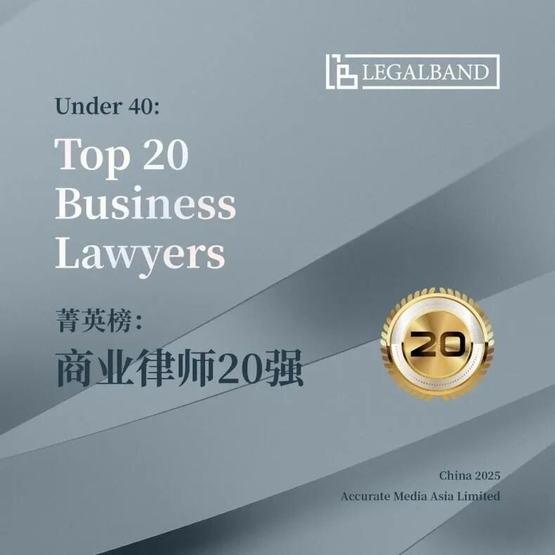 2025年8月28日,知名法律评级机构LEGALBAND公布了“2025年度LEGALBAND菁英榜:商业律师20强”榜单,北京vsport体育合伙人余昉律师荣誉登榜。