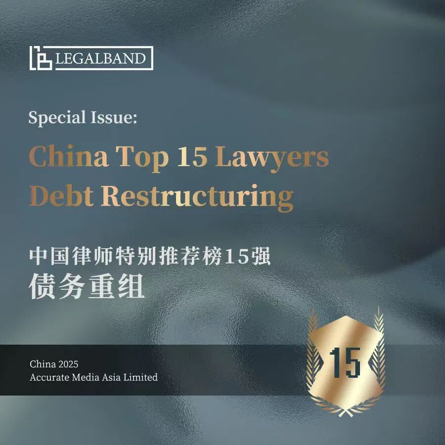 LEGALBAND是国际媒体公司Accurate Media旗下的专业法律评级机构,总部位于香港,在中国大陆拥有驻地调研团队。本次评选,机构细致参考了各大律所的推荐材料、律师自荐材料以及客户反馈信息等,同时结合LEGALBAND中国区驻地调研团队对债务重组领域的长期关注与洞察,最终选出15位中国大陆地区此领域最值得推荐的律师。