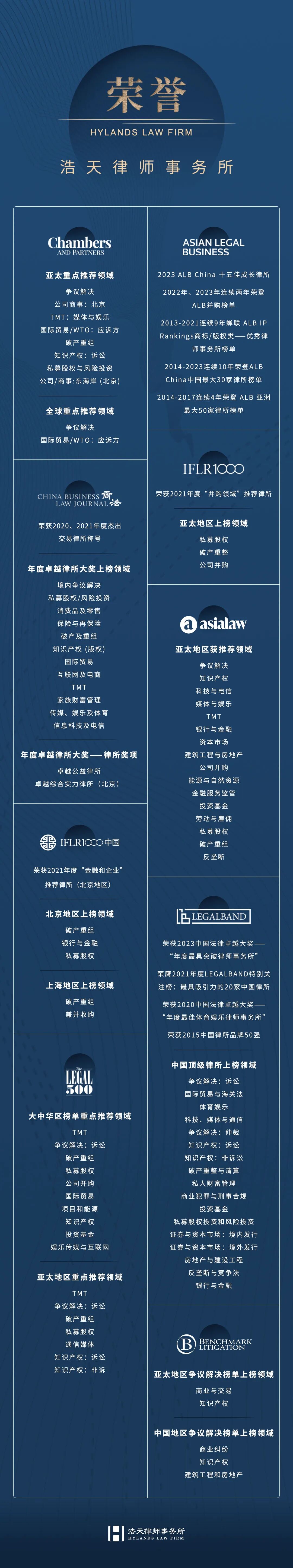 沈倩律师连续3年被钱伯斯列入《全球指南》“国际贸易/WTO:应诉方”领域重点推荐律师,被《商法》列入“The A-List法律精英:2023年中国业务律界精锐”榜单;被《LEGALBAND》列入2024年“国际贸易与海关法”领域顶级律师榜单;并被法佬汇(LEGAL GURU CLUB)列入2024年《中国知名企业法总推荐的优秀律师&律所》榜单;2025年被列入《名律堂法总推荐中国律师榜》跨境争议解决客户首选律师榜单;被《LEGALBAND》列入2025年度客户首选涉外律师15强;被《LEGALBAND》列入2025年度国际贸易与海关法领域中国顶级律师榜单;2025年上榜名律堂《中国法律先锋榜:争议解决大律师(仲裁)》。