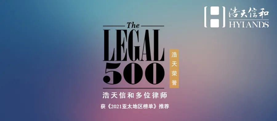 浩天荣誉 | 浩天信和荣获The Legal 500《2021亚太地区榜单》推荐