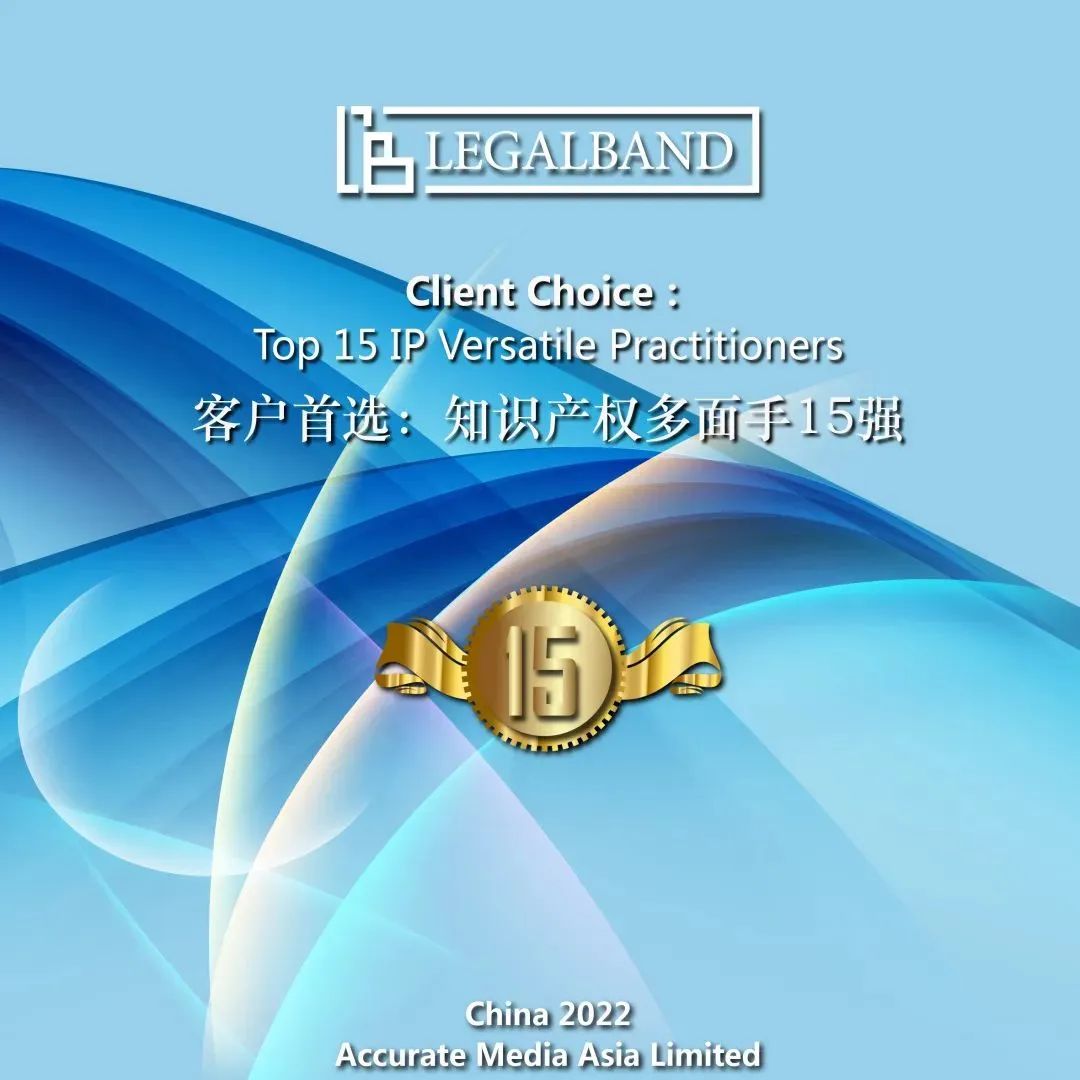 2022年9月23日,知名法律评级机构LEGALBAND公布了“2022年度LEGALBAND客户首选:知识产权多面手15强”榜单,北京vsport体育合伙人朱玉子律师凭借精湛的专业能力和卓越的市场表现荣誉登榜。