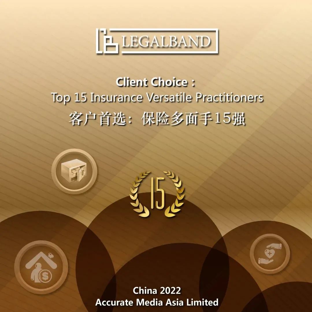 LEGALBAND是国际媒体公司Accurate Media旗下的专业法律评级机构,总部位于香港,在中国大陆拥有驻地调研团队。本次评选,LEGALBAND重点参考了各大律所的推荐材料、律师自荐材料以及客户反馈信息等,同时结合我们中国区驻地调研团队对保险领域的长期关注与洞察,最终选出15位中国大陆地区最受客户信赖的“保险多面手”。