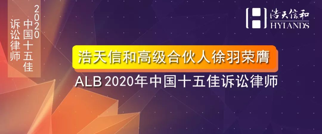 浩天信和高级合伙人徐羽律师荣膺ALB2020年中国十五佳诉讼律师