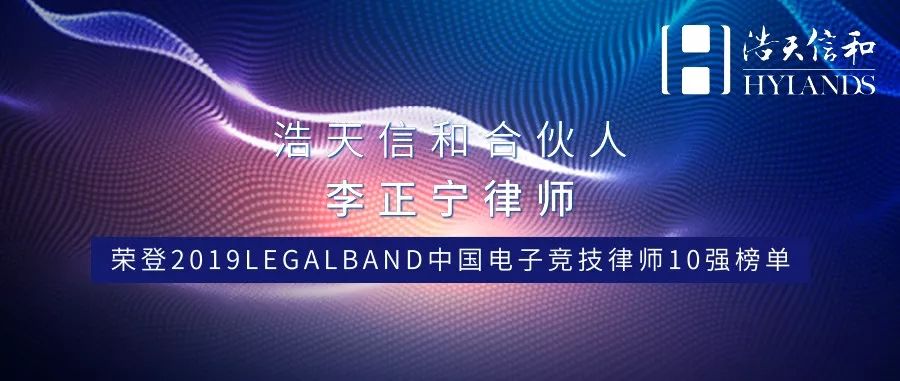 浩天信和合伙人李正宁律师荣登2019 LEGALBAND中国电子竞技律师10强榜单