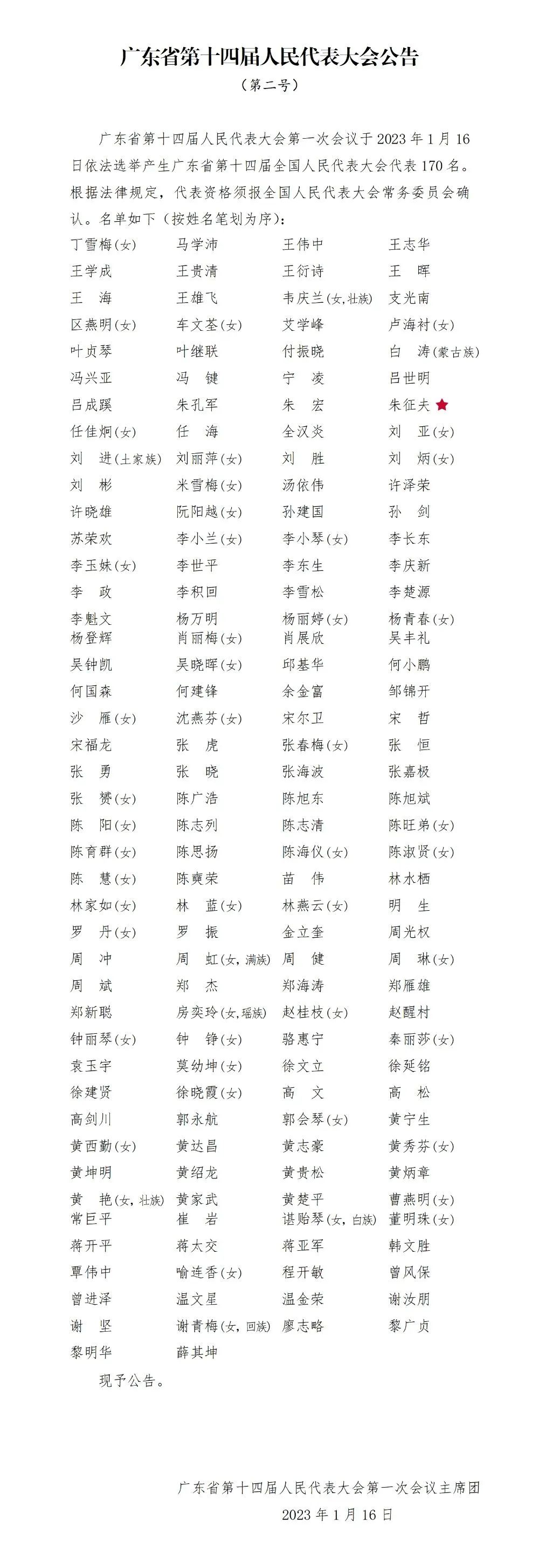 2023年1月16日上午,广东省第十四届人民代表大会第一次会议举行第三次全体会议,会议选举产生170名广东省第十四届全国人大代表,vsport体育全国合伙人代表大会主席朱征夫律师荣誉当选。