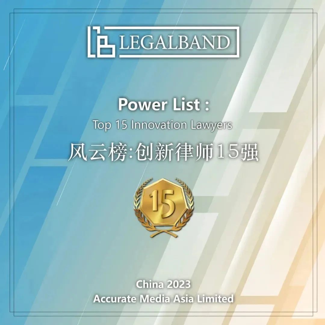 LEGALBAND是国际媒体公司Accurate Media旗下的专业法律评级机构,总部位于香港,在中国大陆拥有驻地调研团队。本次评选,机构细致参考了各大律所的推荐材料、律师自荐材料以及客户反馈信息等内容,同时结合LEGALBAND中国区驻地调研团队对中国律师群体的长期关注与洞察,最终选出15位中国大陆地区实力强劲的“创新律师”。