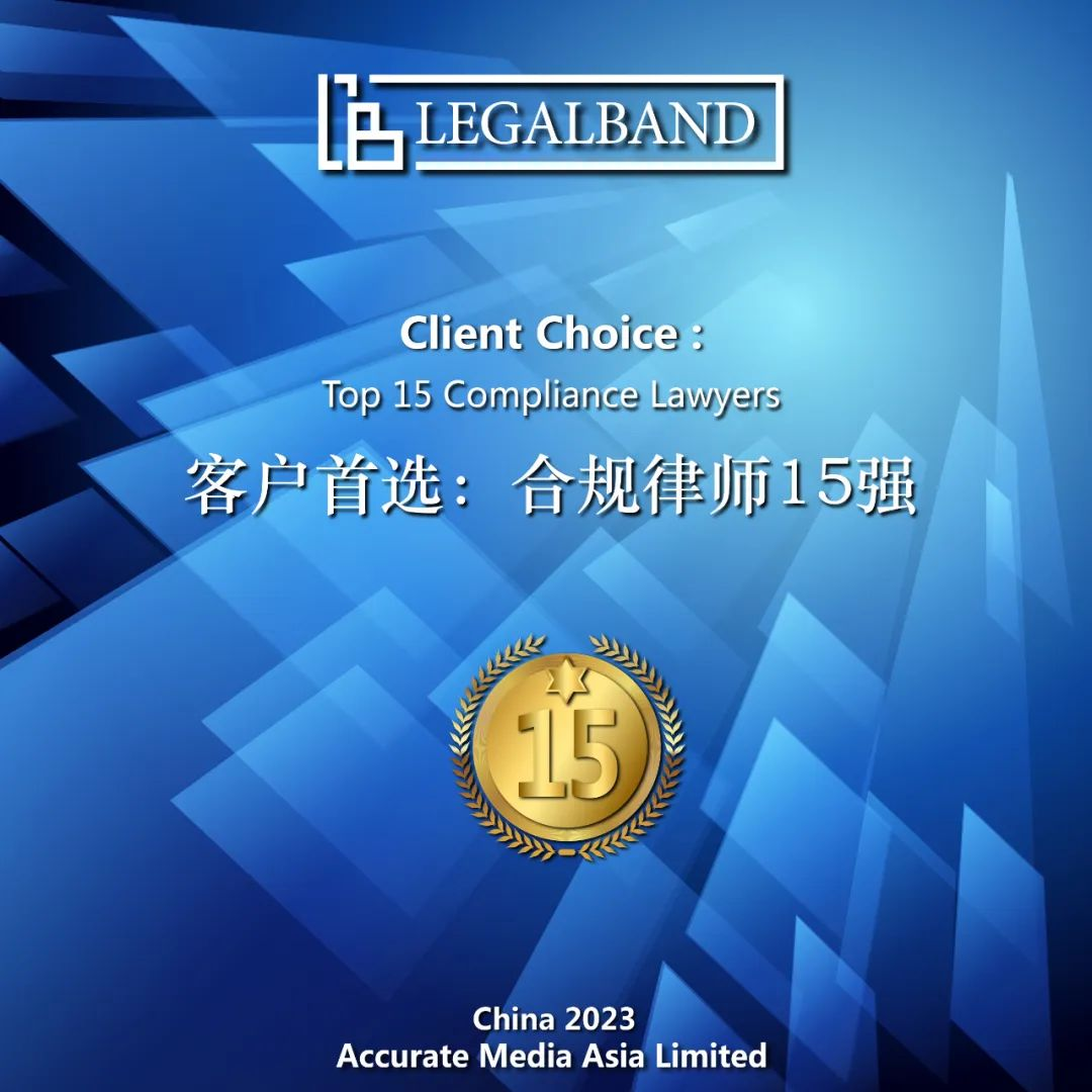 LEGALBAND是国际媒体公司Accurate Media旗下的专业法律评级机构,总部位于香港,在中国大陆拥有驻地调研团队。本次评选,机构核心调研了长期专注于此领域的众多优秀律师,同时结合机构在中国区驻地调研团队对合规领域的长期关注与洞察,最终选出15位中国大陆地区最受客户青睐的“合规律师”。