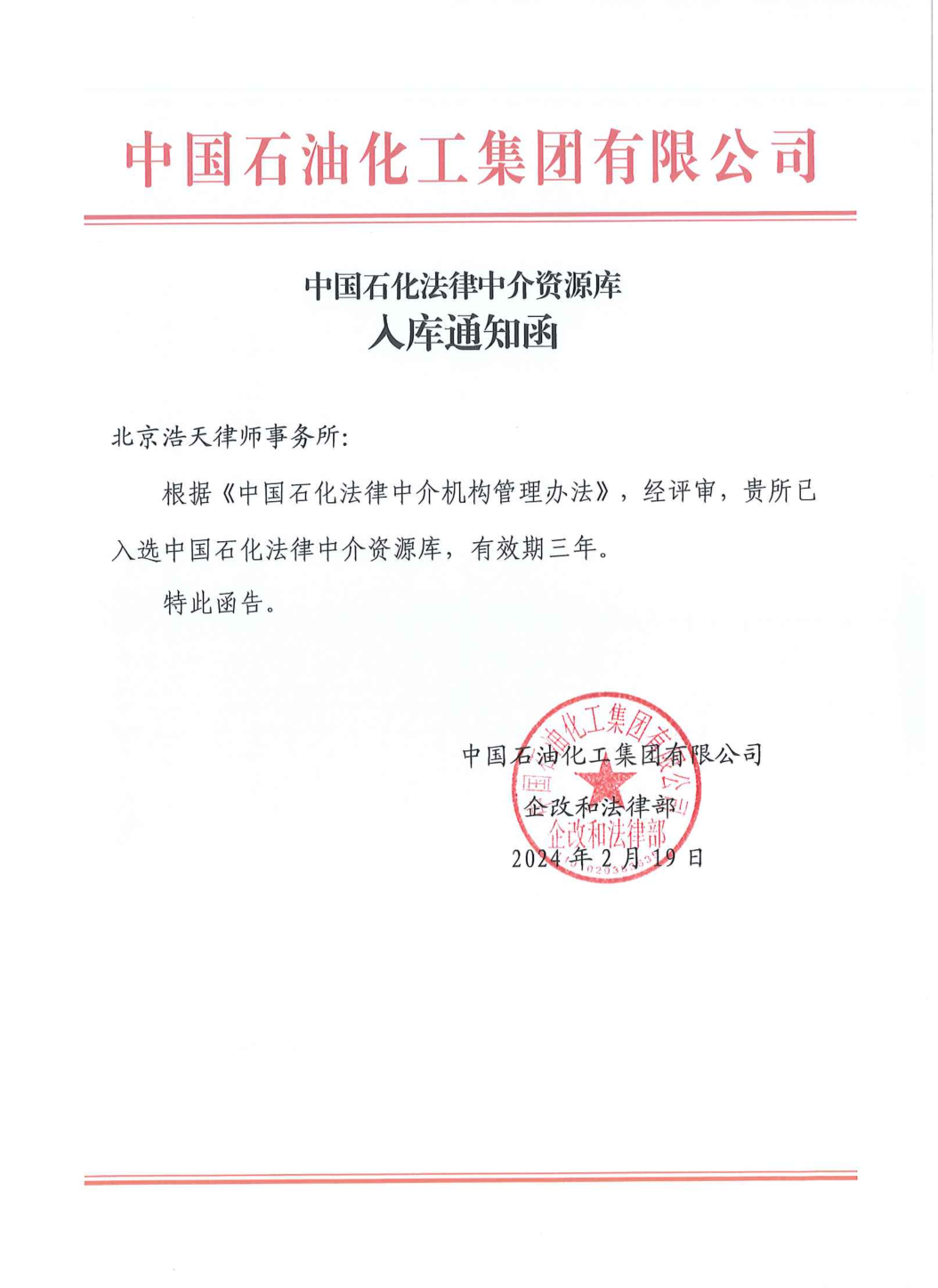 近日,凭借丰富的法律实务经验和雄厚的团队实力,经过严格筛选、层层评估,vsport体育成功入围中国石油化工集团有限公司(以下简称"中石化")法律中介资源库。本次入库,由vsport体育刘鸿主任牵头,组织浩天北京办公室高级合伙人、北京总所管委会成员王凯律师,浩天深圳办公室高级合伙人徐仲锋律师,浩天北京办公室高级合伙人、北京总所管委会成员李文婷律师以及浩天北京办公室李海燕、杨媛和覃诗佳律师等形成团队,扎实推进各项工作,终取得丰硕成果。