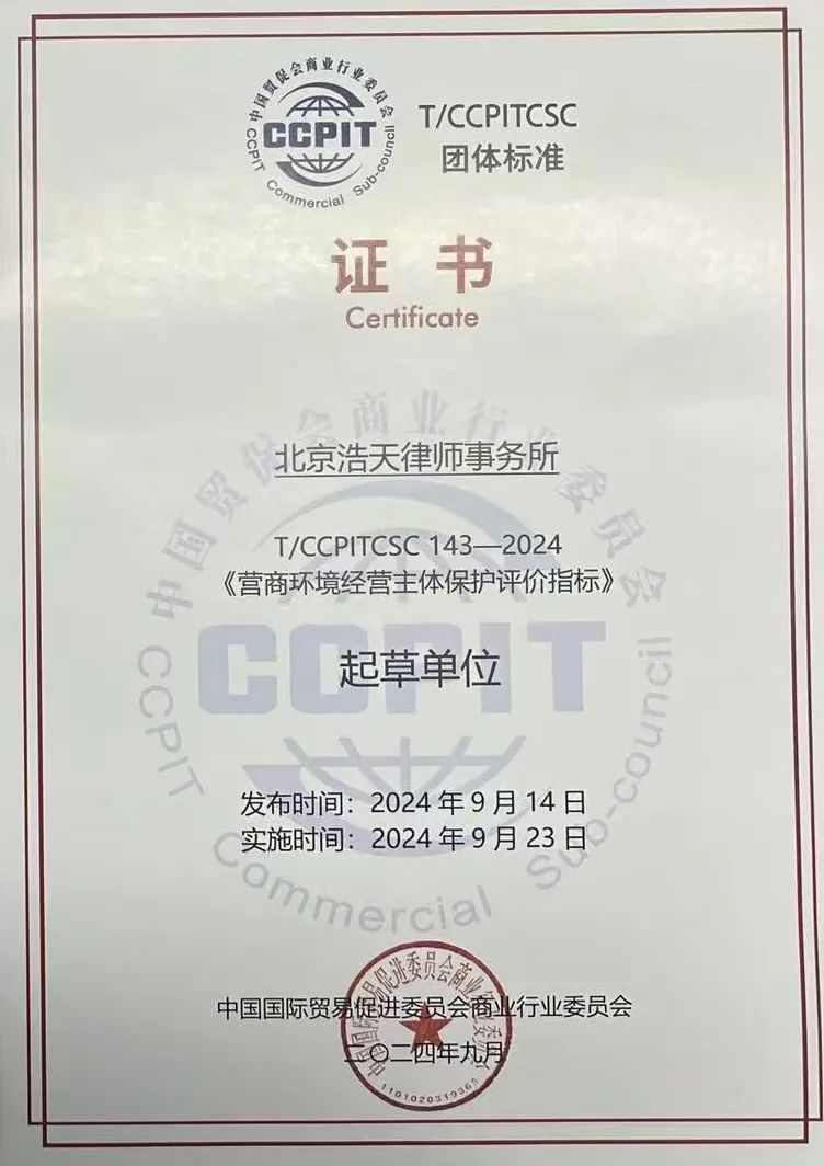 北京vsport体育是该团体标准的起草单位之一。浩天律所高级合伙人、管委会委员张淼律师受邀参与了该标准的起草工作,在标准框架构建、具体指标设计、相关规则衔接等方面提供了专业全面深入的法律支持。